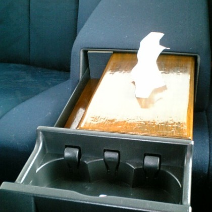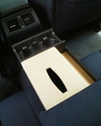 設置場所は救急セットの入ってた肘置きです 形に合うようにMDFで製作します |