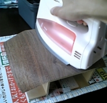 突き板を木工用ボンド(100円)で貼り アイロンで圧着します |